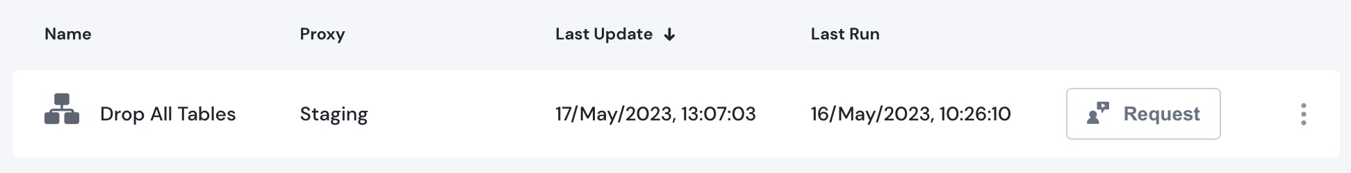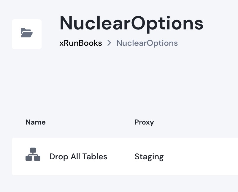 <figure><img src="https://491011674-files.gitbook.io/~/files/v0/b/gitbook-x-prod.appspot.com/o/spaces%2Fm4p7lGuBAXN5jCVyoF7P%2Fuploads%2FWrWu0gqf5piGBsZxMIrA%2FScreenshot%202023-05-17%20at%2013.10.43.jpg?alt=media&#x26;token=c4b62200-189e-4f1e-a13c-5489bfa4b737" alt="The Drop all Tables Runbook"><figcaption><p>Drop all Tables Runbook</p></figcaption></figure>